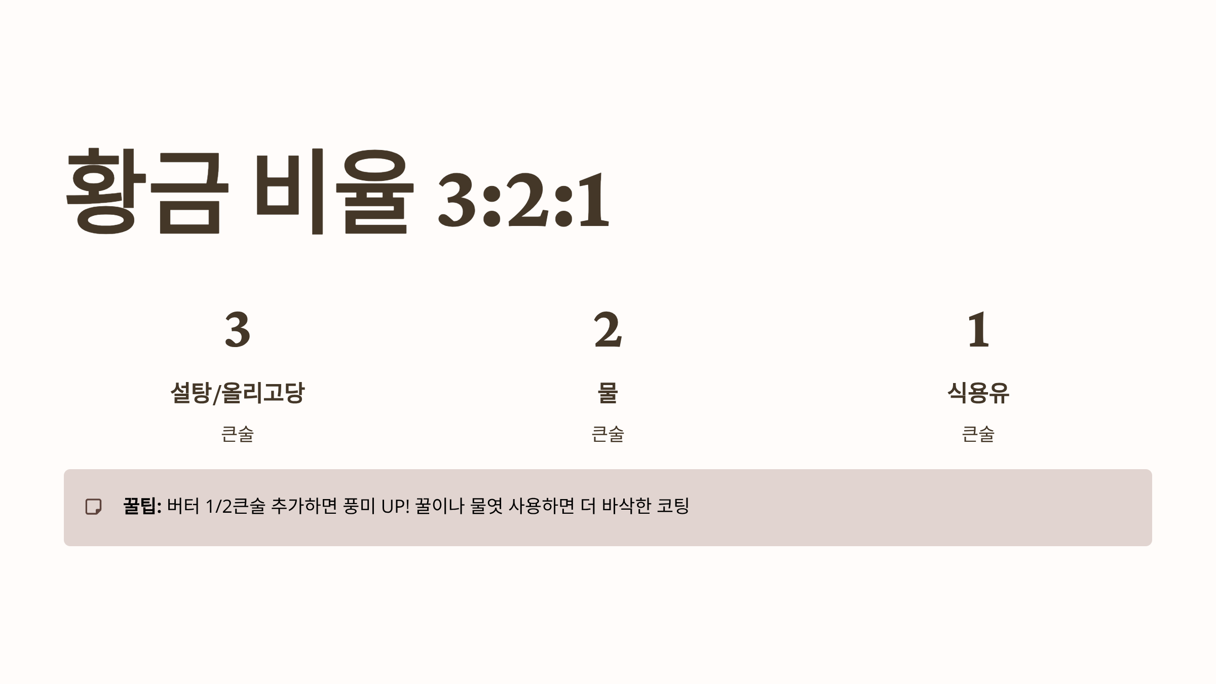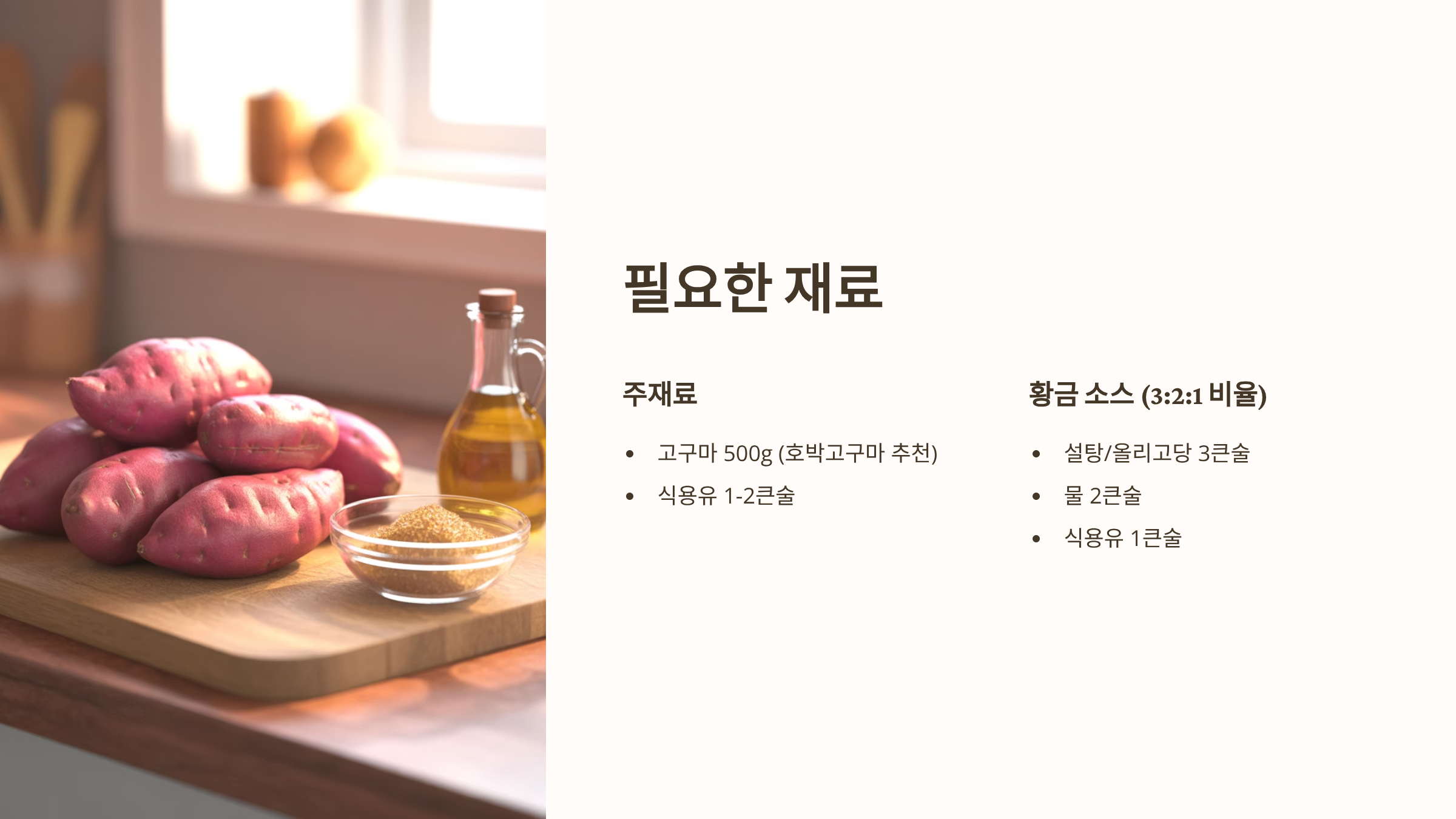 - 황금 소스 기본 비율 (고구마 500g 기준):