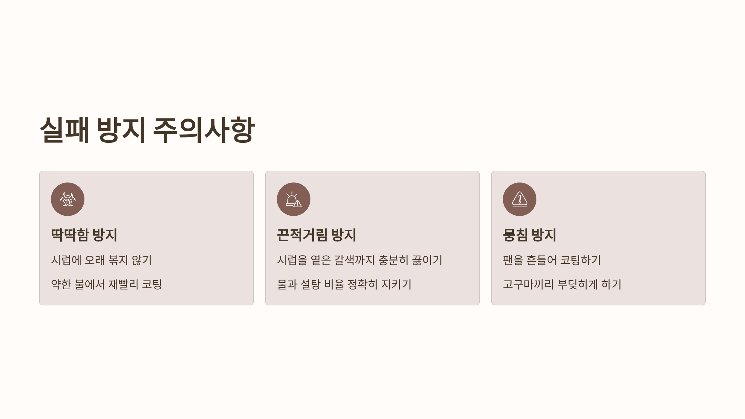 딱딱함/끈적거림 방지: 실패 없이 윤기나는 맛탕을 만드는 주의사항