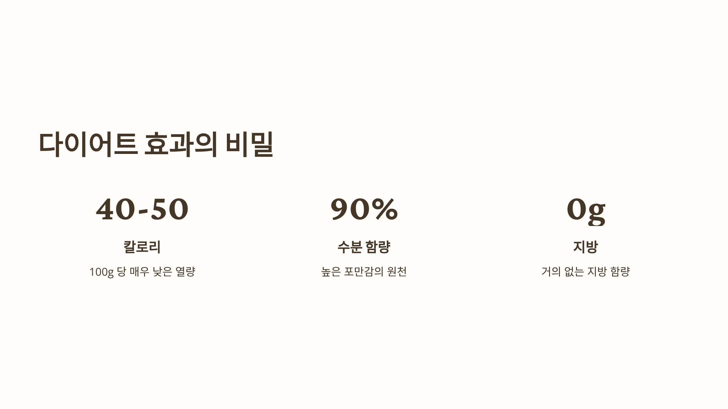 - 저칼로리 고포만감: 도토리묵은 100g당 약 40~50kcal로 칼로리가 매우 낮습니다. 주성분이 수분(약 90%)과 탄수화물(도토리 전분)이지만, 식이섬유가 풍부하여 적은 양으로도 높은 포만감을 제공합니다. 이는 식사량을 조절하고 체지방 감소를 유도하는 데 큰 이점이 됩니다.