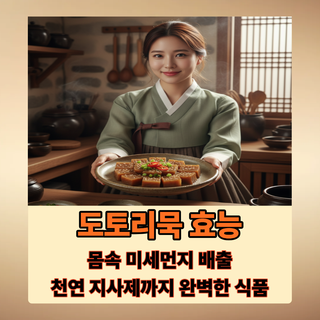 도토리묵 효능은 몸속 미세먼지 배출을 돕고 다이어트에 탁월한 효과가 있어 건강식으로 인기가 높습니다.