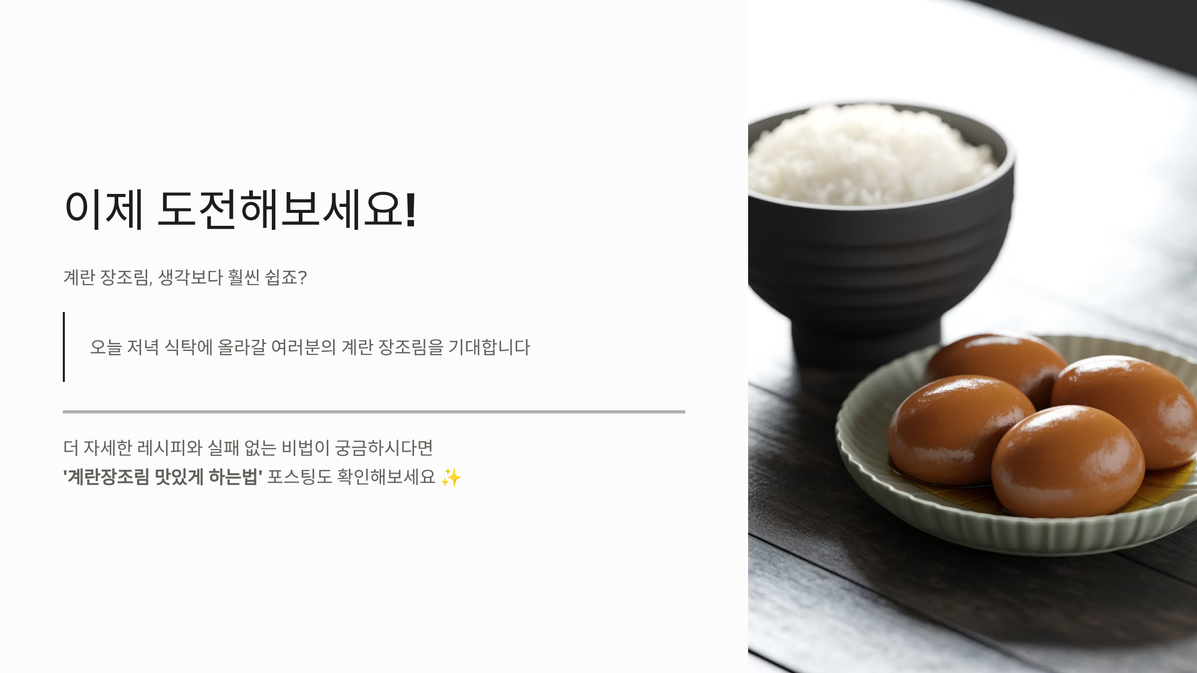 계란 장조림이 완성되면 냉장 보관 후 하루 이틀 지나 더 깊은 맛을 즐길 수 있습니다. 다음 포스팅에서는 ‘계란장조림 맛있게 하는법’에 대해 더 세밀한 레시피, 재료별 맛 조절법, 실패하지 않는 비법 등을 상세히 다룰 예정이니 꼭 확인해보세요.