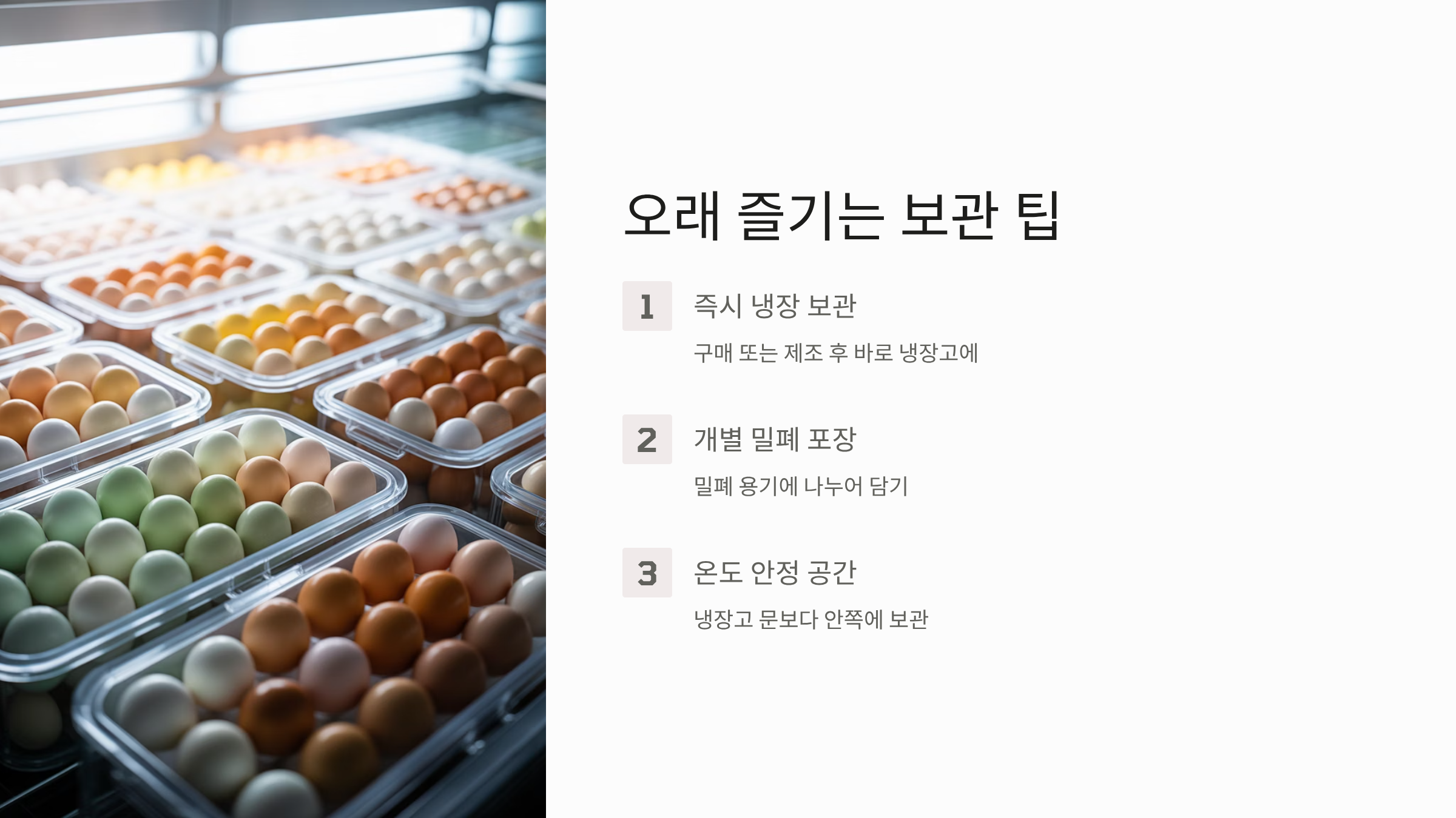 이번 구운계란 보관방법에서는 구운계란의 신선함과 맛을 오래 유지하는 구체적인 보관 방법, 실온 보관과 냉장 보관의 차이, 그리고 최적의 보관 온도에 대해 자세히 알려드리겠습니다.