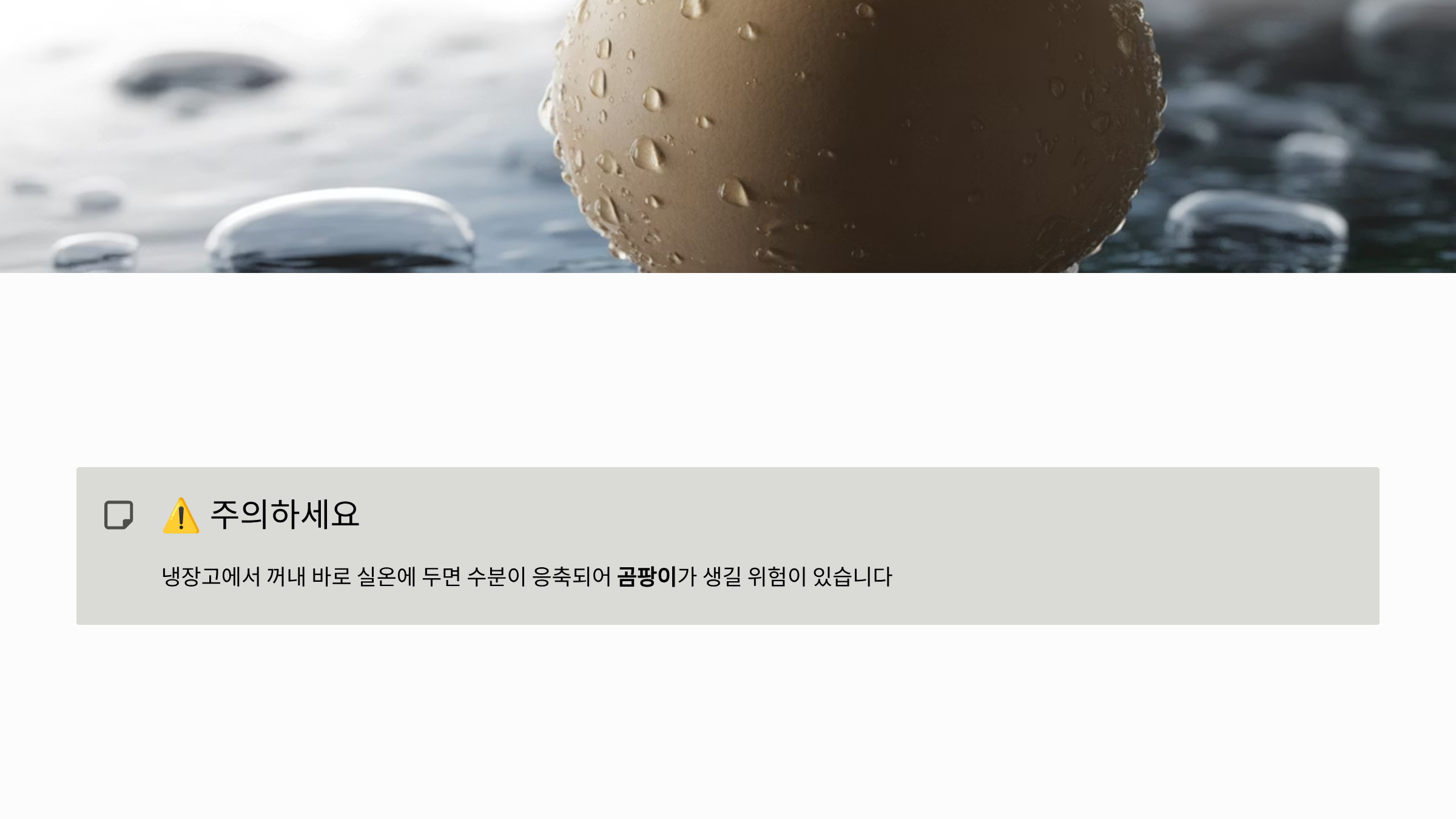 - 단, 냉장고에서 꺼내 바로 실온에 두면 수분 응축으로 곰팡이가 생길 위험이 있으니 주의하세요.