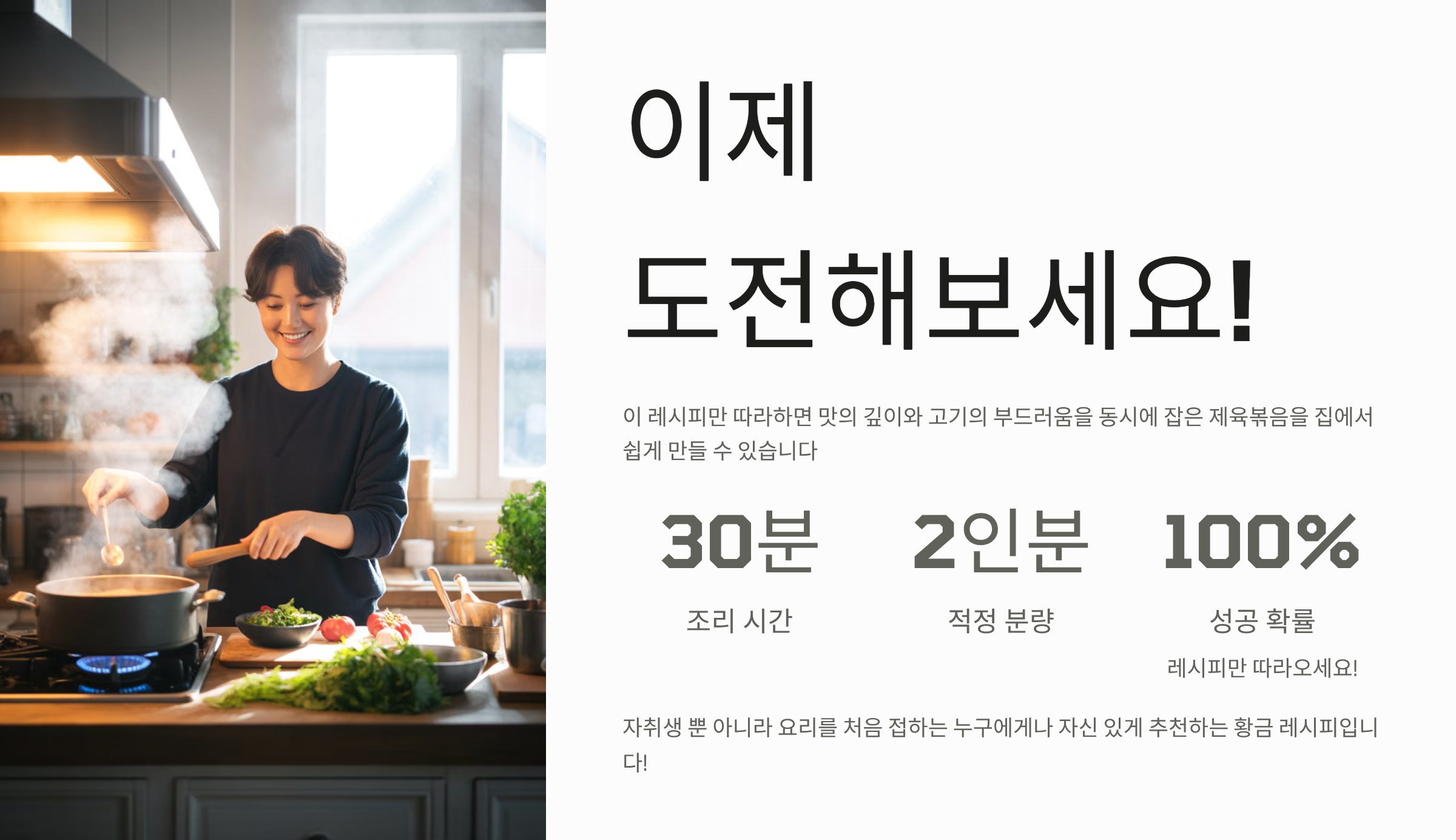 이 레시피만 따라 하면 복잡하지 않으면서도 맛의 깊이와 고기의 부드러움을 동시에 잡은 제육볶음을 집에서 쉽게 만들 수 있습니다. 자취생 뿐 아니라 요리를 처음 접하는 누구에게나 자신 있게 추천하는 황금 레시피니까 꼭 도전해 보세요!