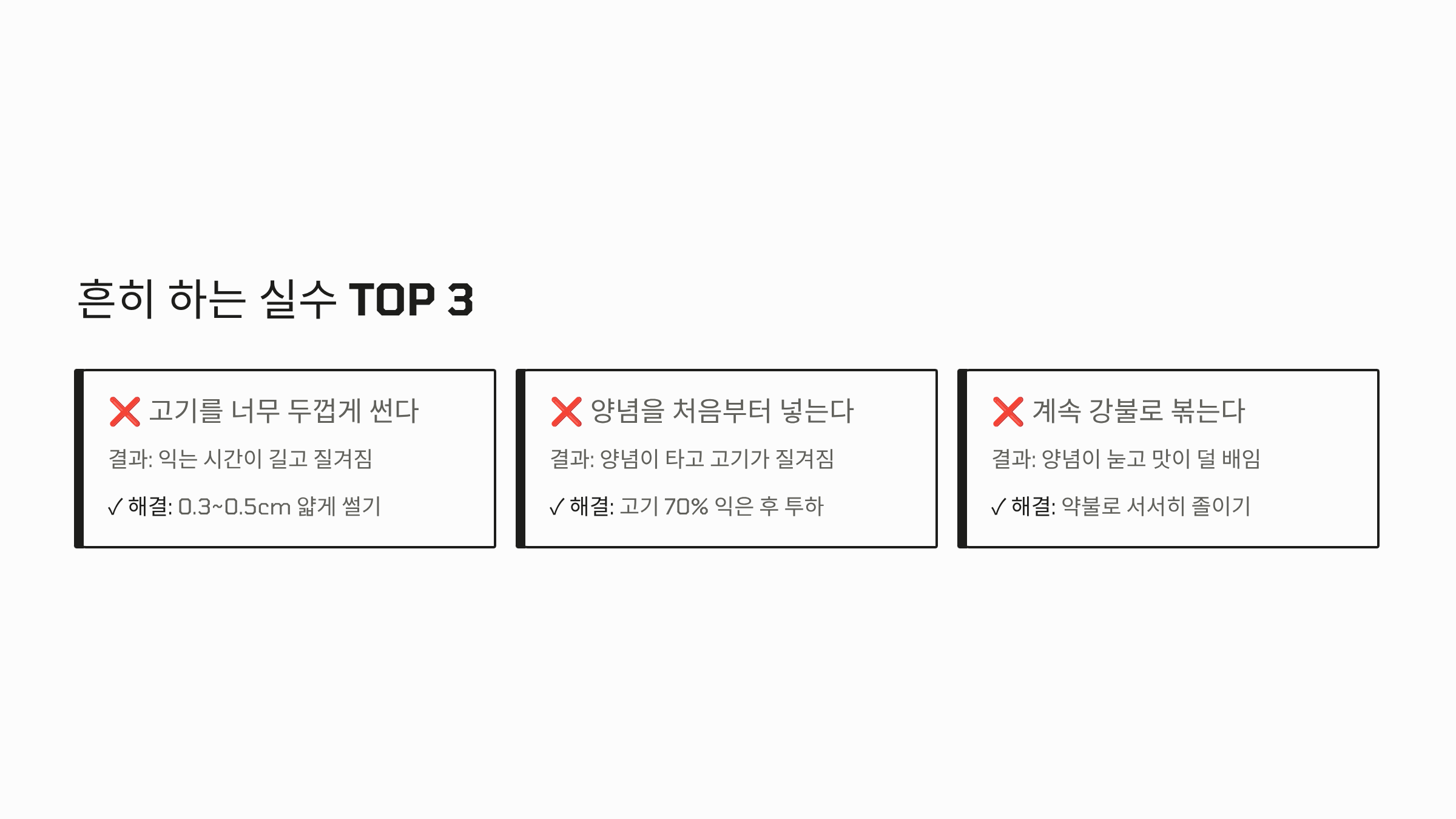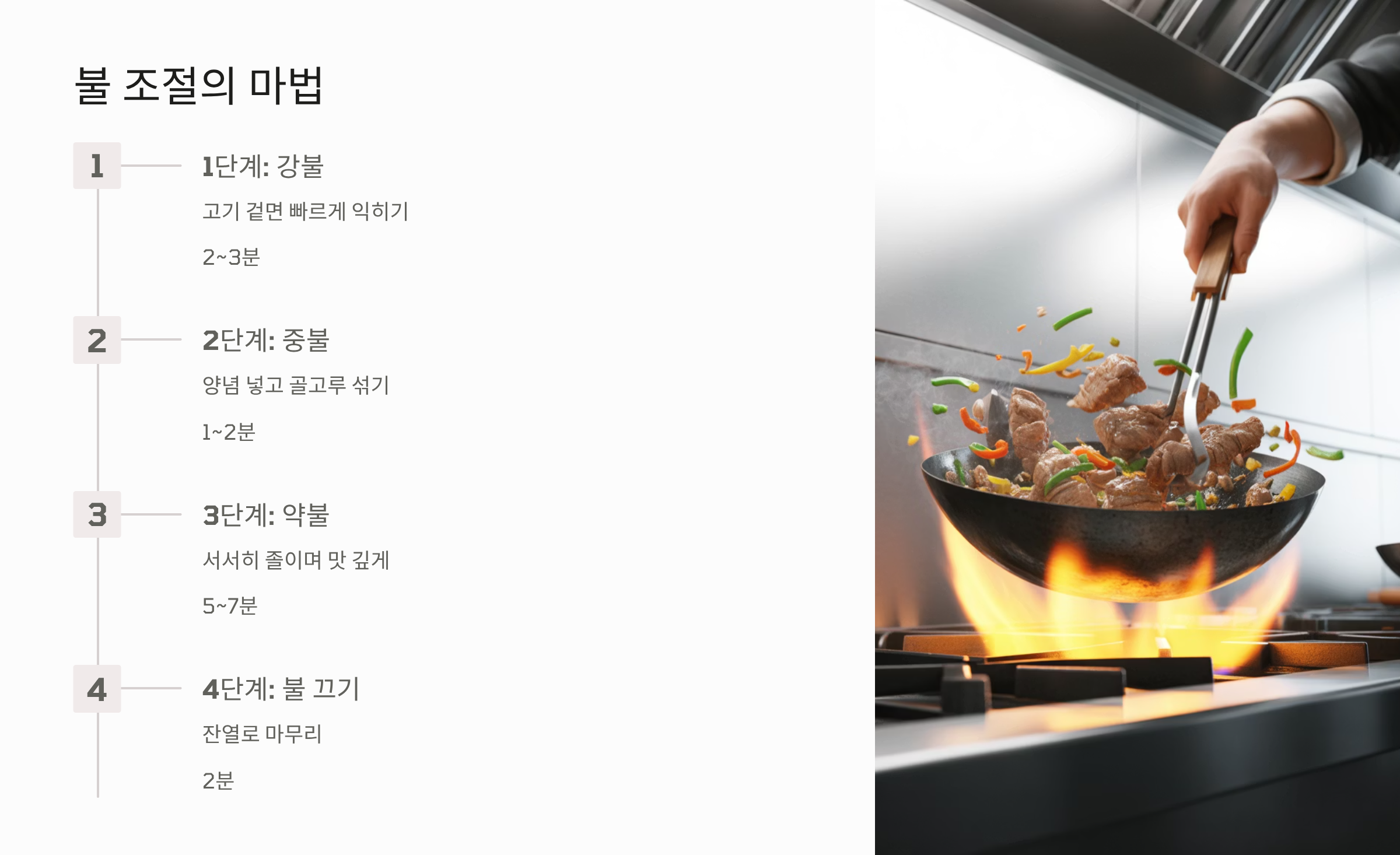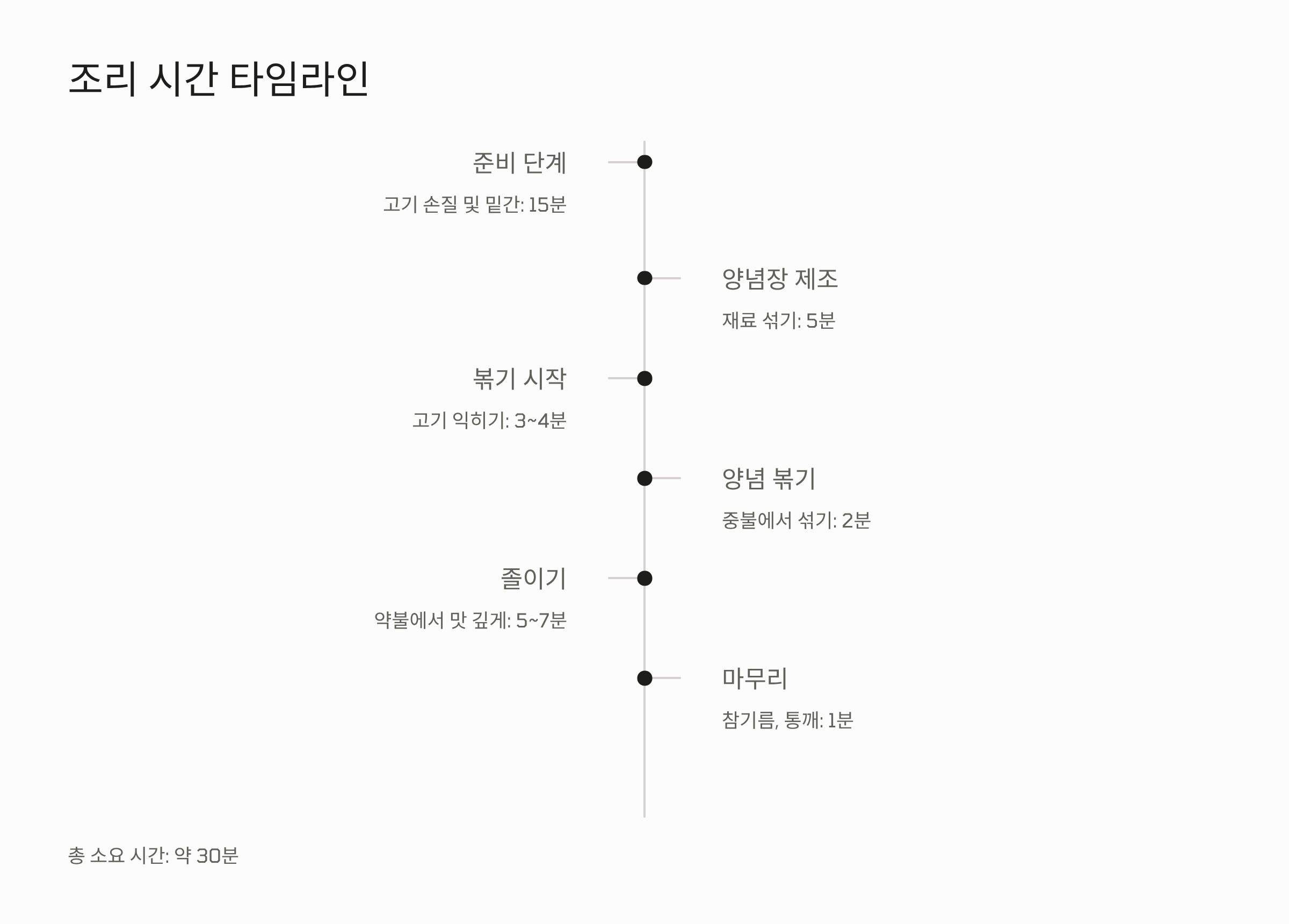 - 볶을 때 너무 오래 익히지 말고, 고기가 부드럽게 익을 때 불을 끄고 잔열로 마무리하는 게 비법입니다.