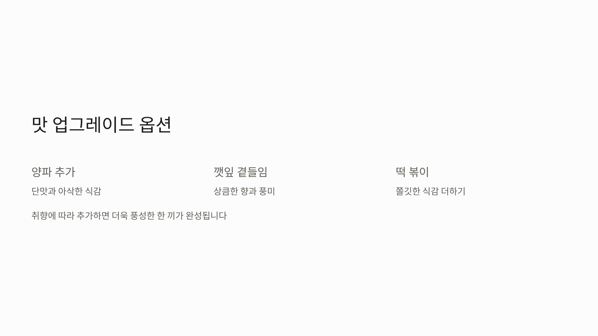 - 신선한 쪽파나 깻잎을 곁들이면 식감과 향이 강조되어 풍미가 더 좋습니다.