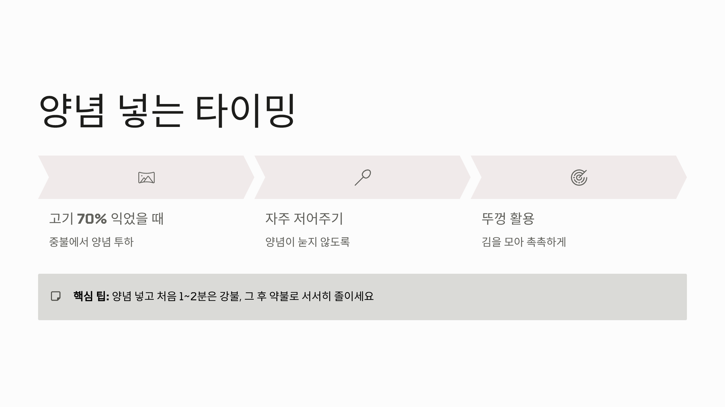 4. 양념 넣는 타이밍과 불 조절