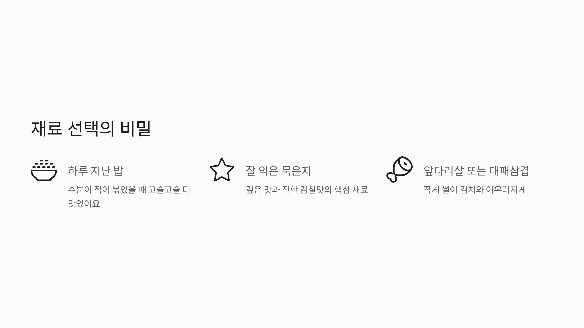 - 불은 중불에서 천천히 볶아야 재료가 눋지 않고 맛이 어우러집니다.
