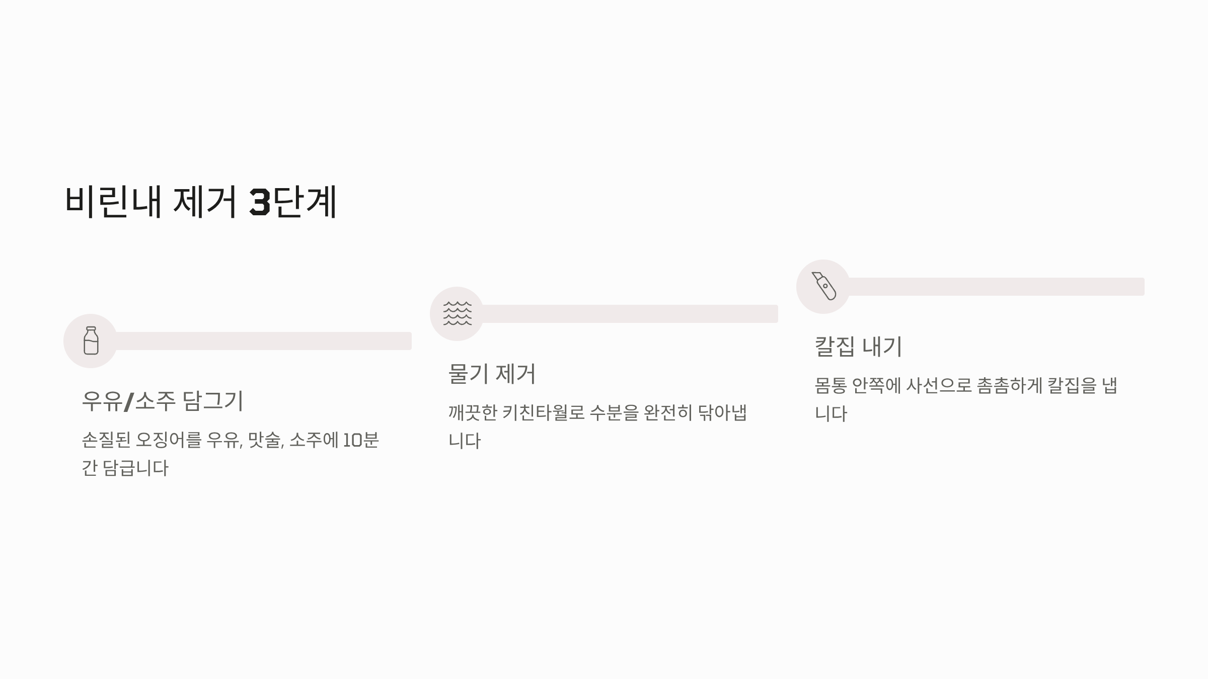 • 비린내 제거 (우유/소주 활용): 오징어의 비린내는 수용성이므로, 손질된 오징어를 우유, 맛술, 또는 소주에 10분 정도 담가두면 비린내를 효과적으로 제거할 수 있습니다. 이후 물기를 깨끗하게 닦아 사용합니다.