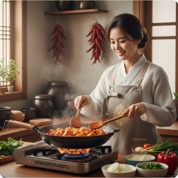 - 센 불 조리 (수분 증발 가속): 오징어볶음은 중불이나 약불이 아닌 최대한 센 불에서 단시간에 빠르게 볶아야 합니다. 센 불은 오징어에서 나오는 수분을 빠르게 증발시키고, 오징어가 질겨지기 전에 익힐 수 있도록 합니다.