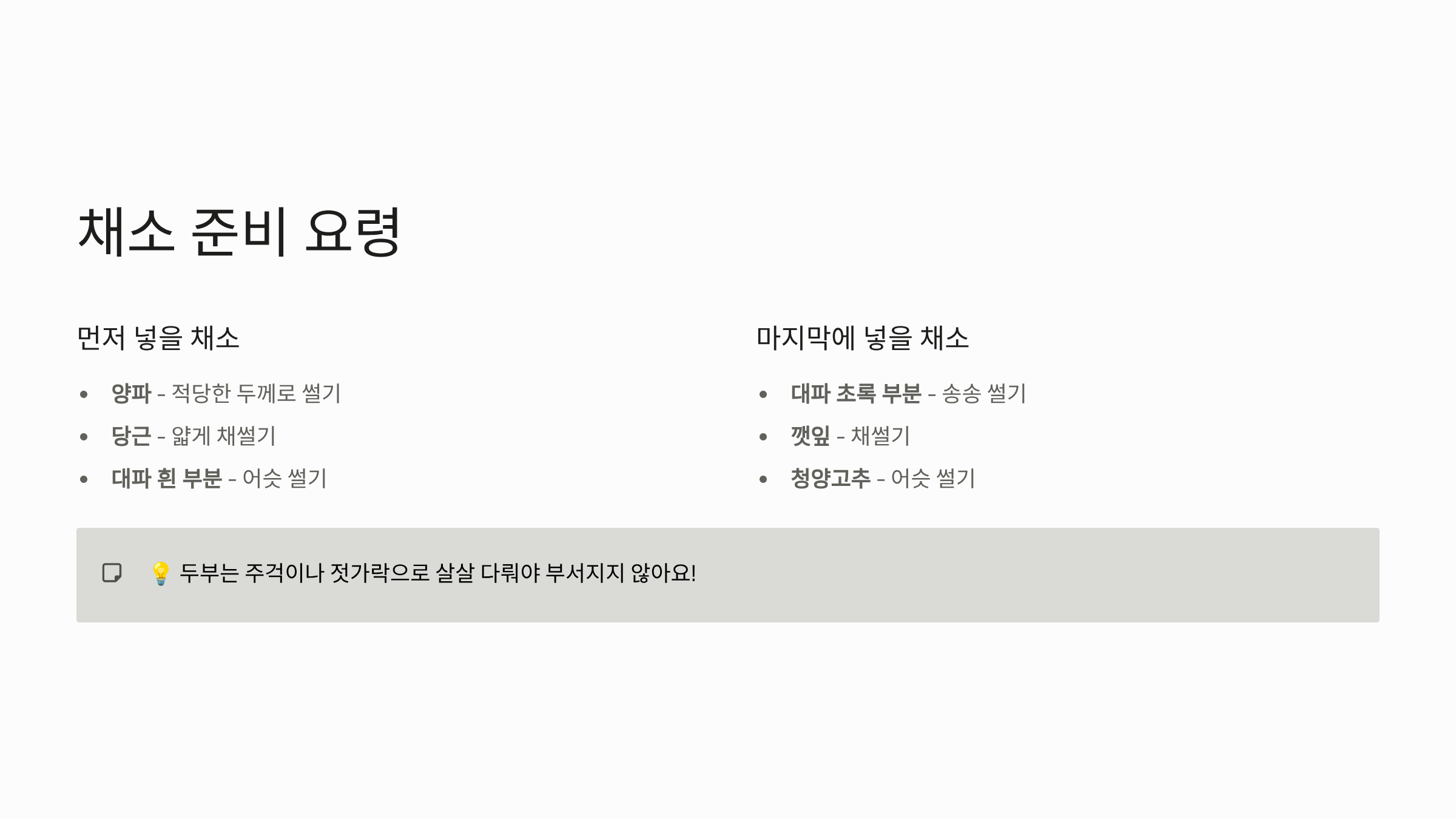 전문점처럼 깊고 감칠맛 나는 두부 두루치기를 완성하는 특별한 꿀팁입니다.
