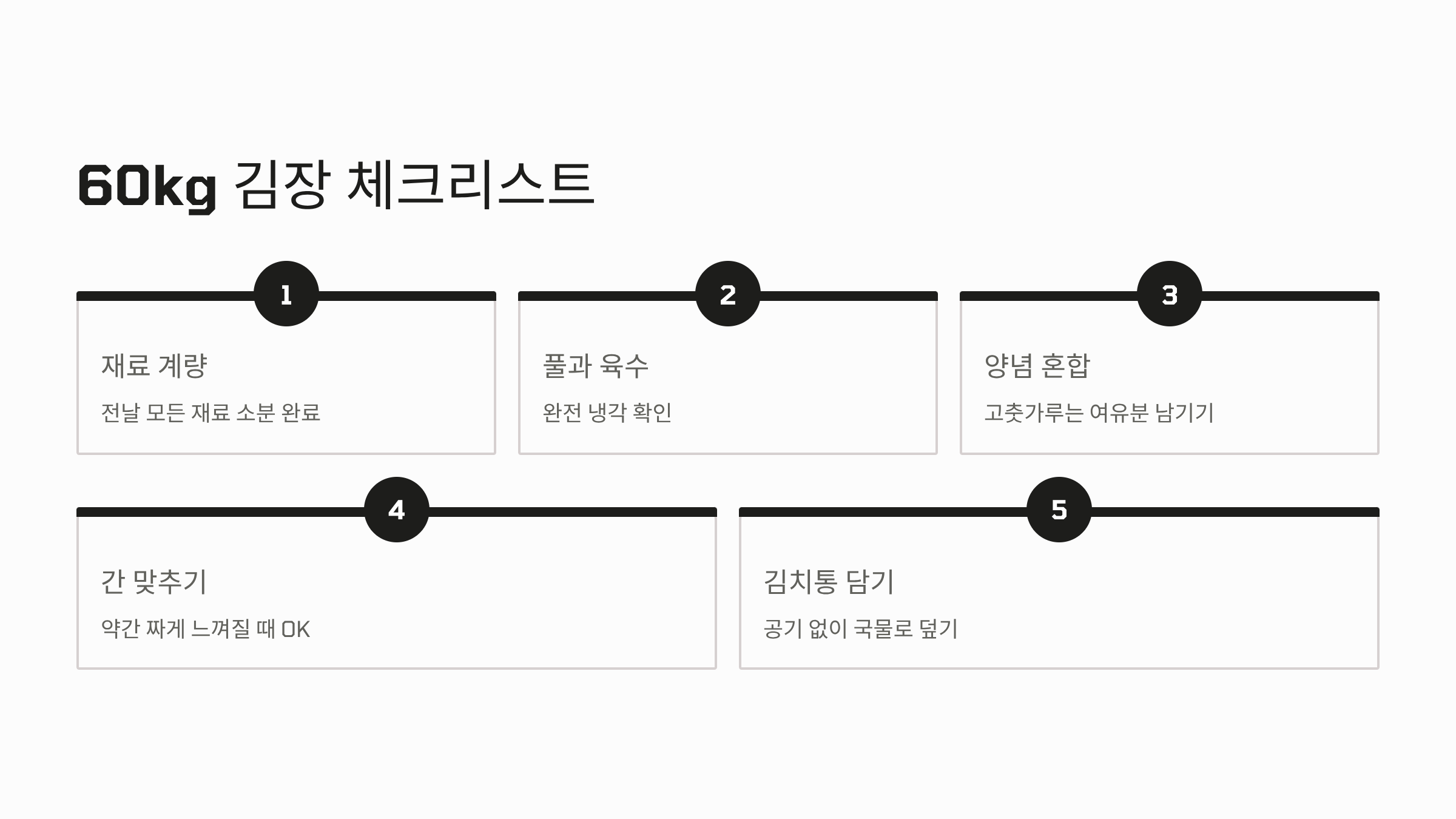 김장김치 60kg 양념 비율을 계산할 때, 배추의 포기 수가 아닌 절인 배추의 무게를 기준으로 잡는 것이 가장 정확합니다.
