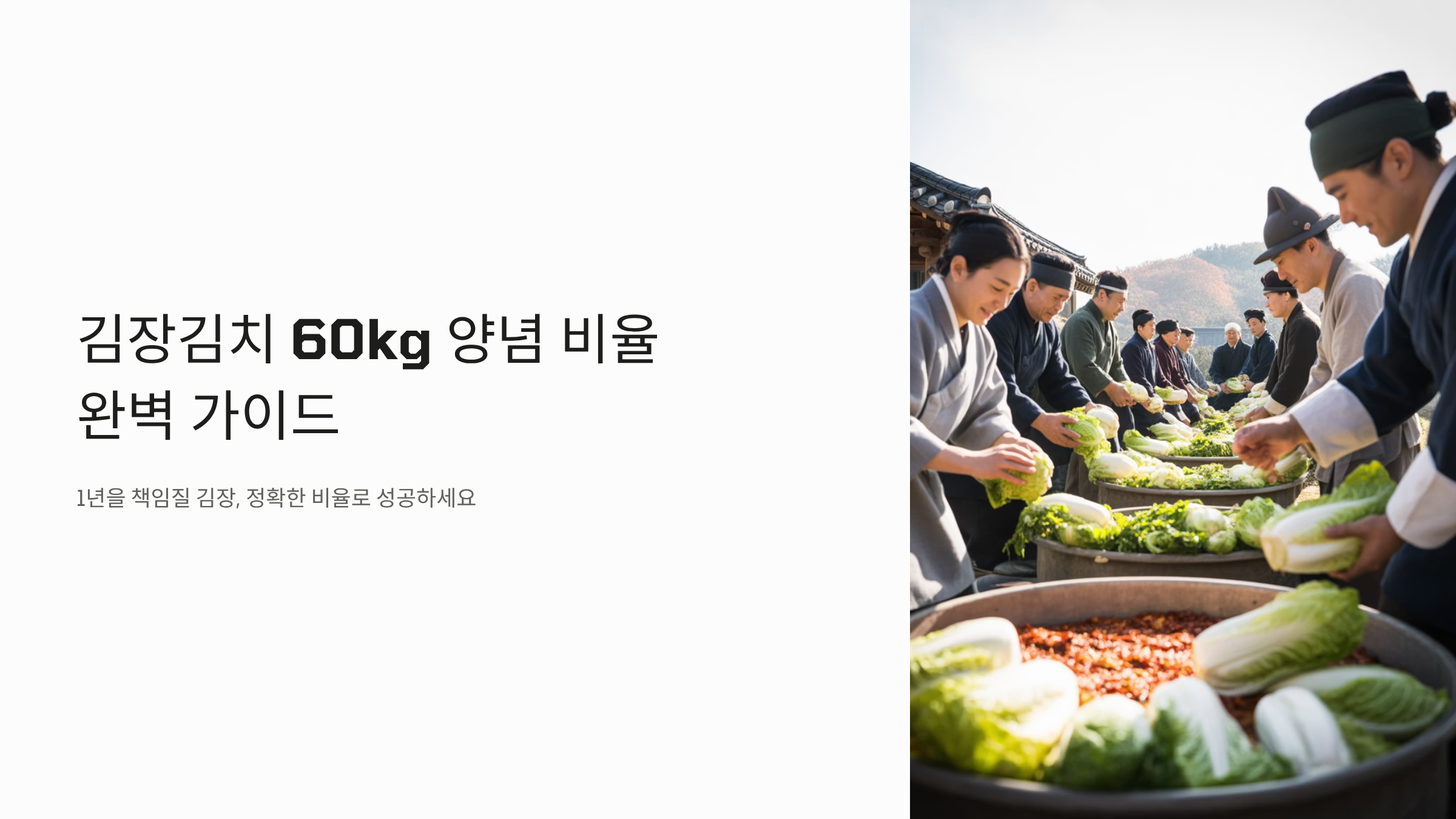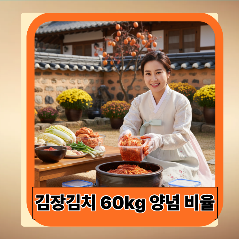김장김치 60kg 양념 비율은 대규모 김장을 위한 정확한 계량이 필요하며, 비율 실패는 1년 김장 맛을 좌우합니다.
