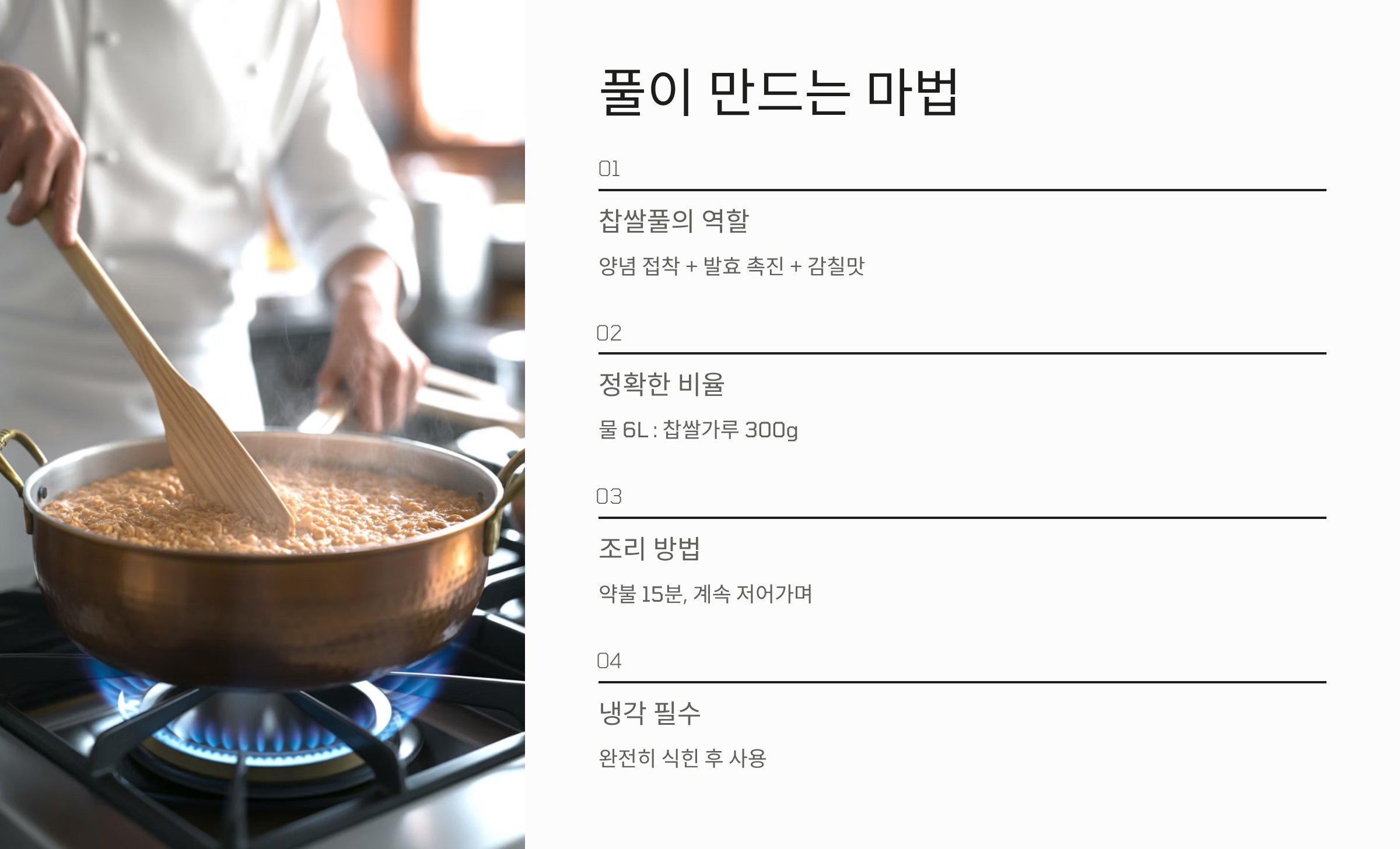 풀 쑤는 법과 육수를 활용한 감칠맛 노하우