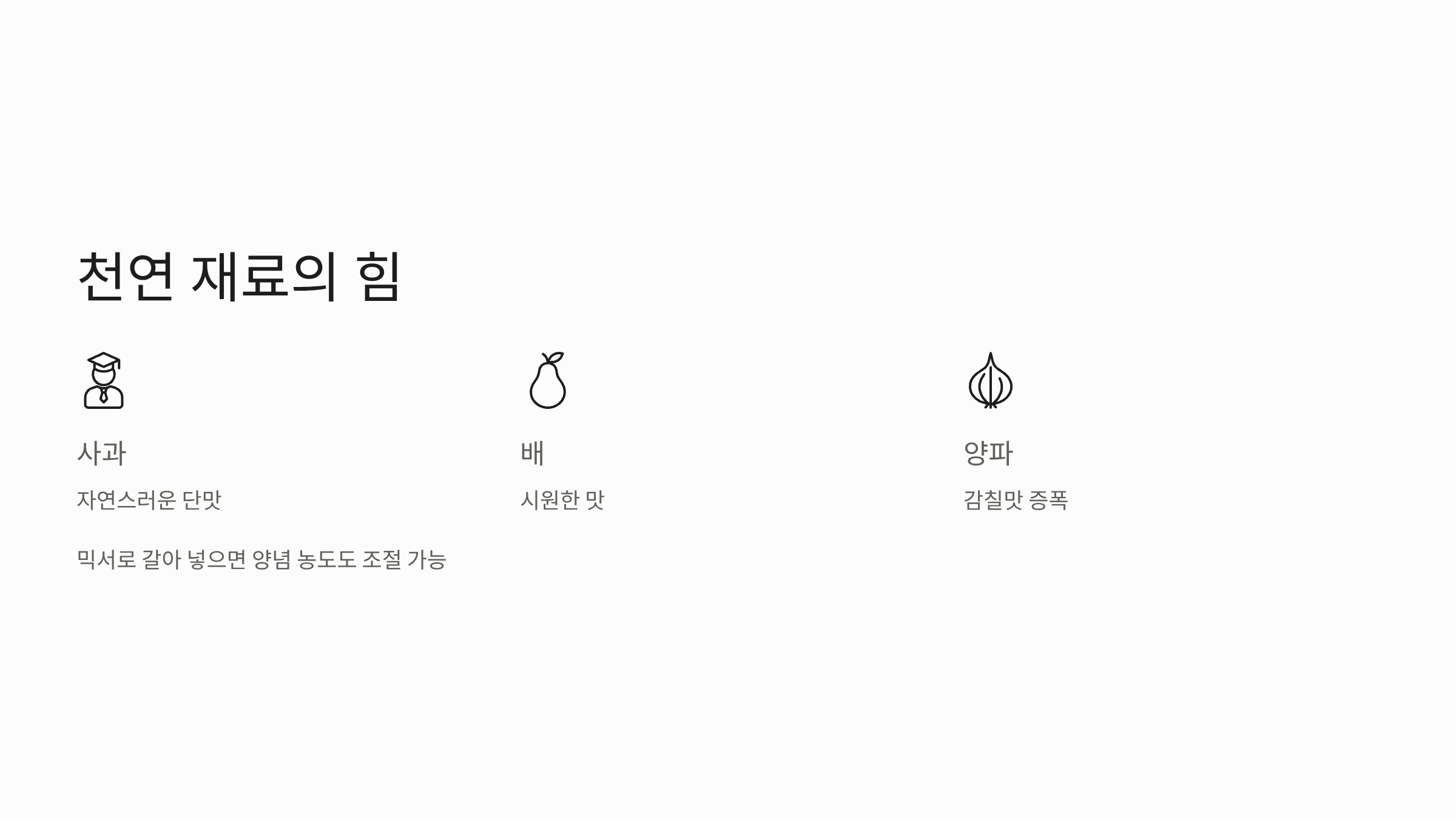 | 천연 단맛 (매실액/설탕) | 1 L | 천연 단맛은 설탕보다 매실액이나 배즙 사용 권장 |