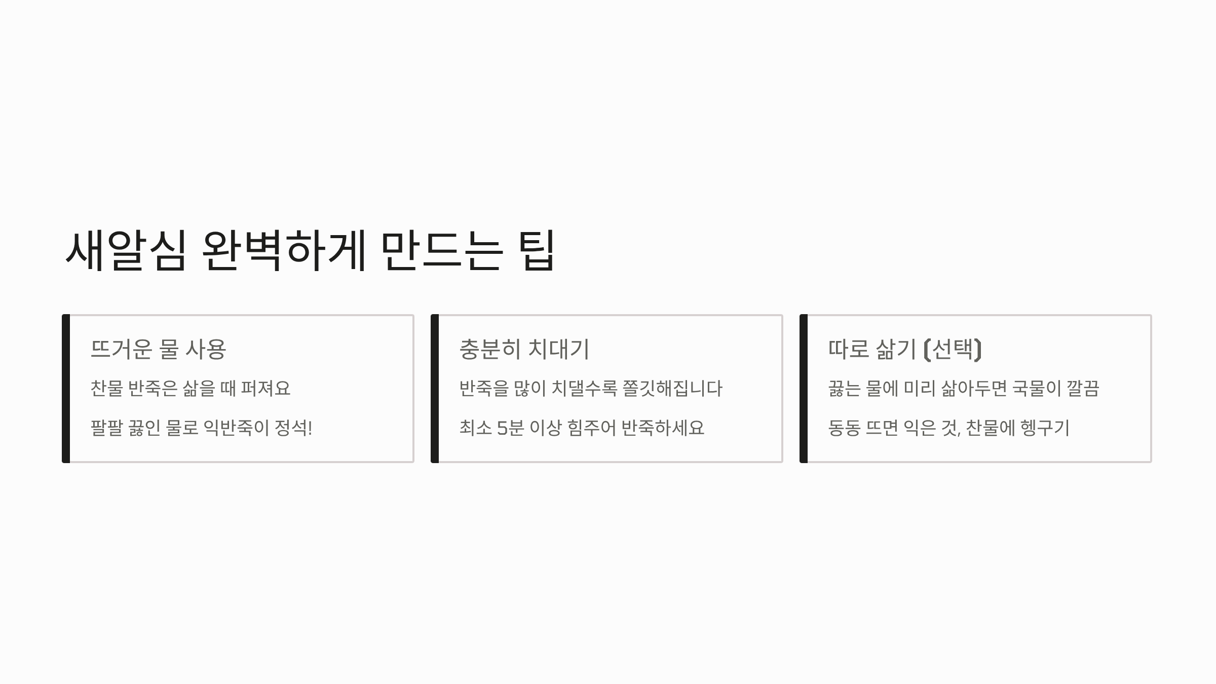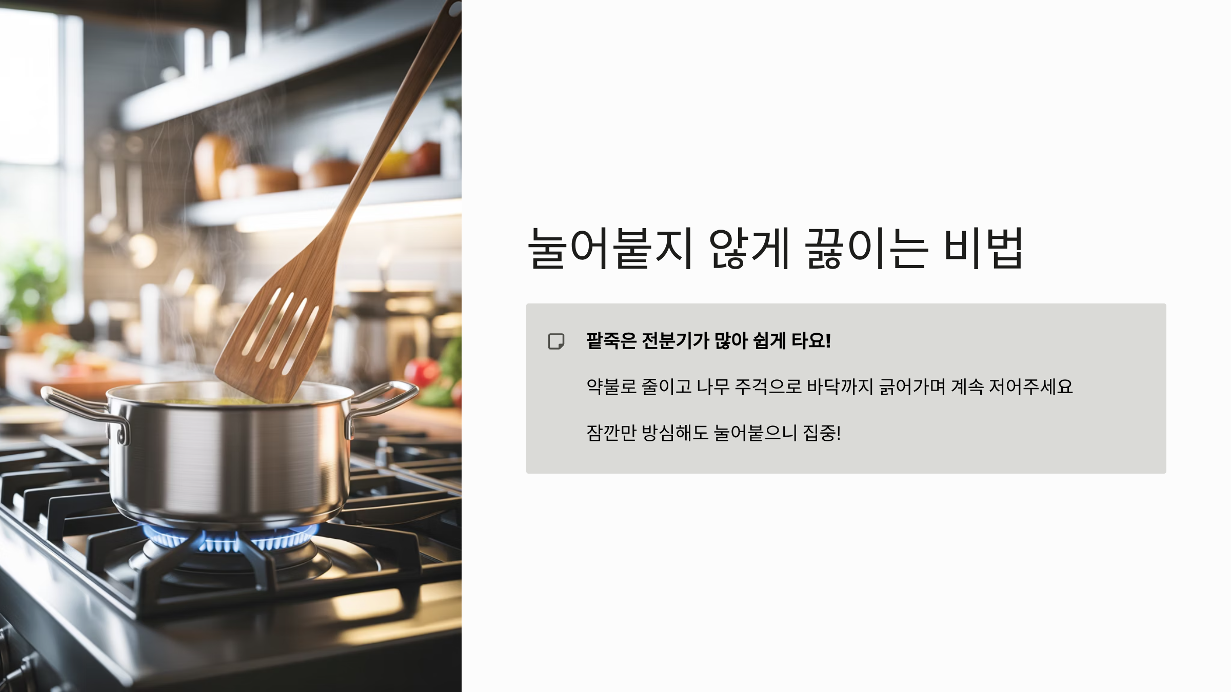 - 압력솥 활용 팁: 압력솥을 사용하면 추가 울린 후 약불에서 15분 정도만 더 끓이면 되어 시간을 더욱 단축할 수 있습니다.