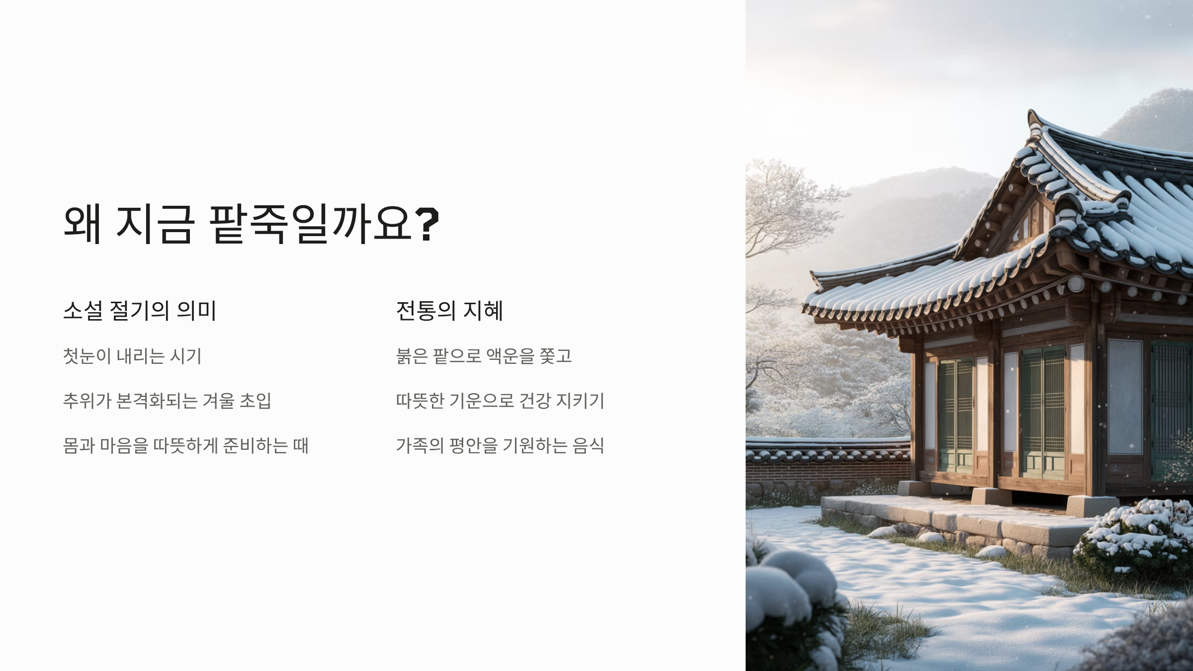 소설 절기 음식: 추위를 이기고 액운을 쫓는 붉은 팥의 의미와 효능