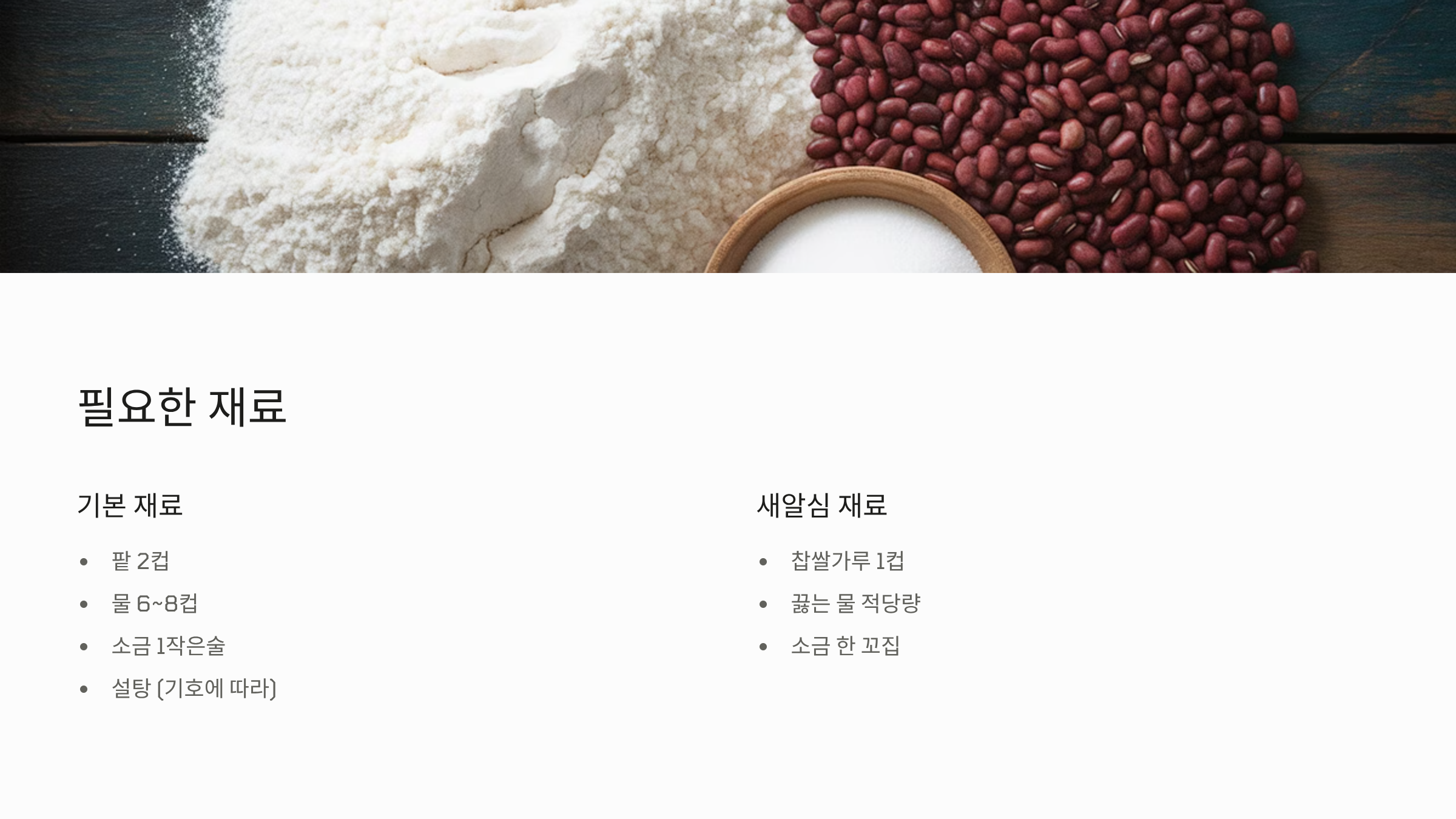 • 좋은 팥 고르기: 팥은 붉은색이 선명하고 윤기가 흐르며, 알이 굵고 고른 것이 좋습니다. 벌레 먹은 구멍이 없고 껍질이 얇은 국산 팥을 사용하면 더욱 구수하고 깊은 맛을 낼 수 있습니다.