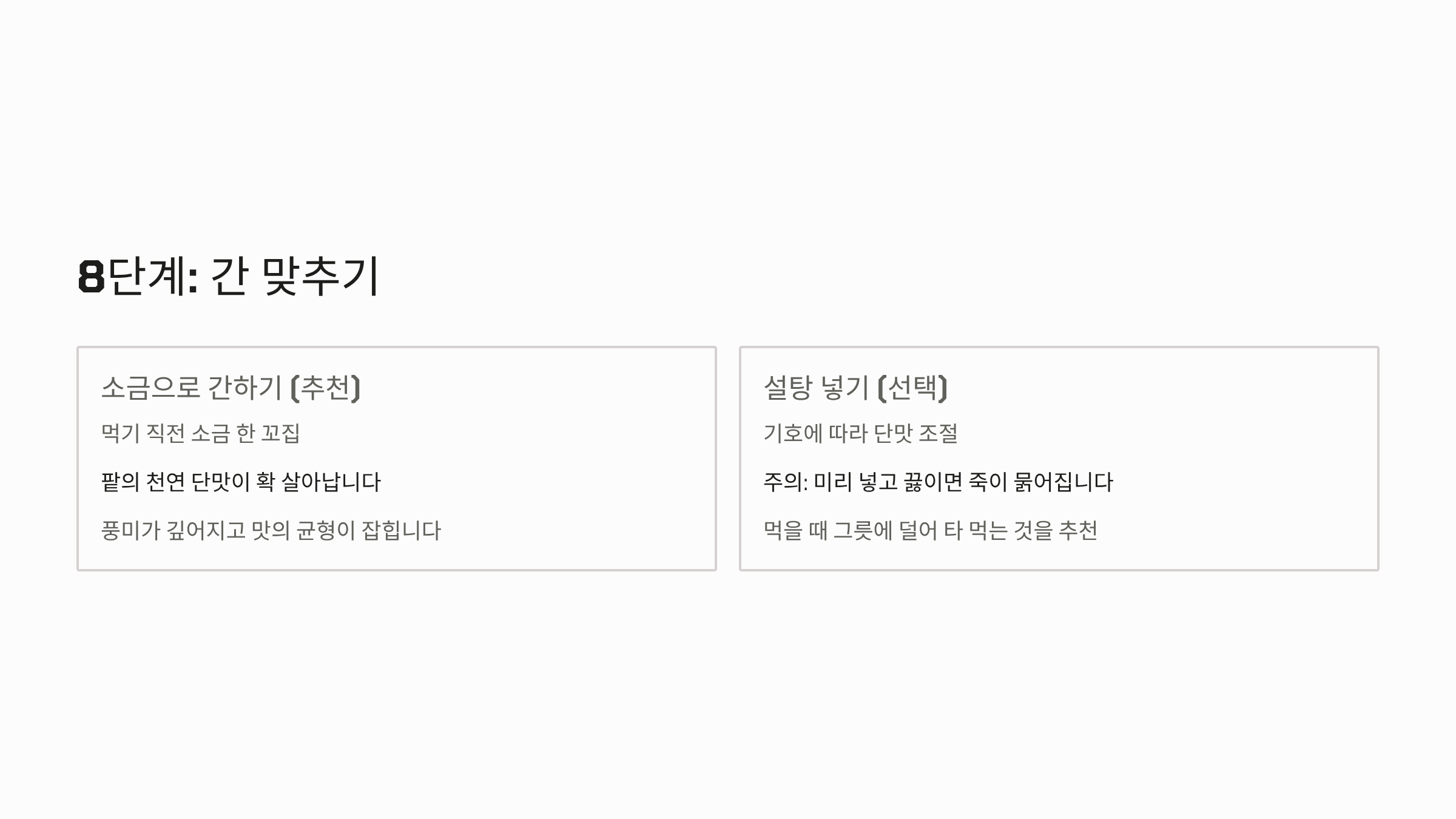 - 간 맞추기 (소금 vs 설탕):