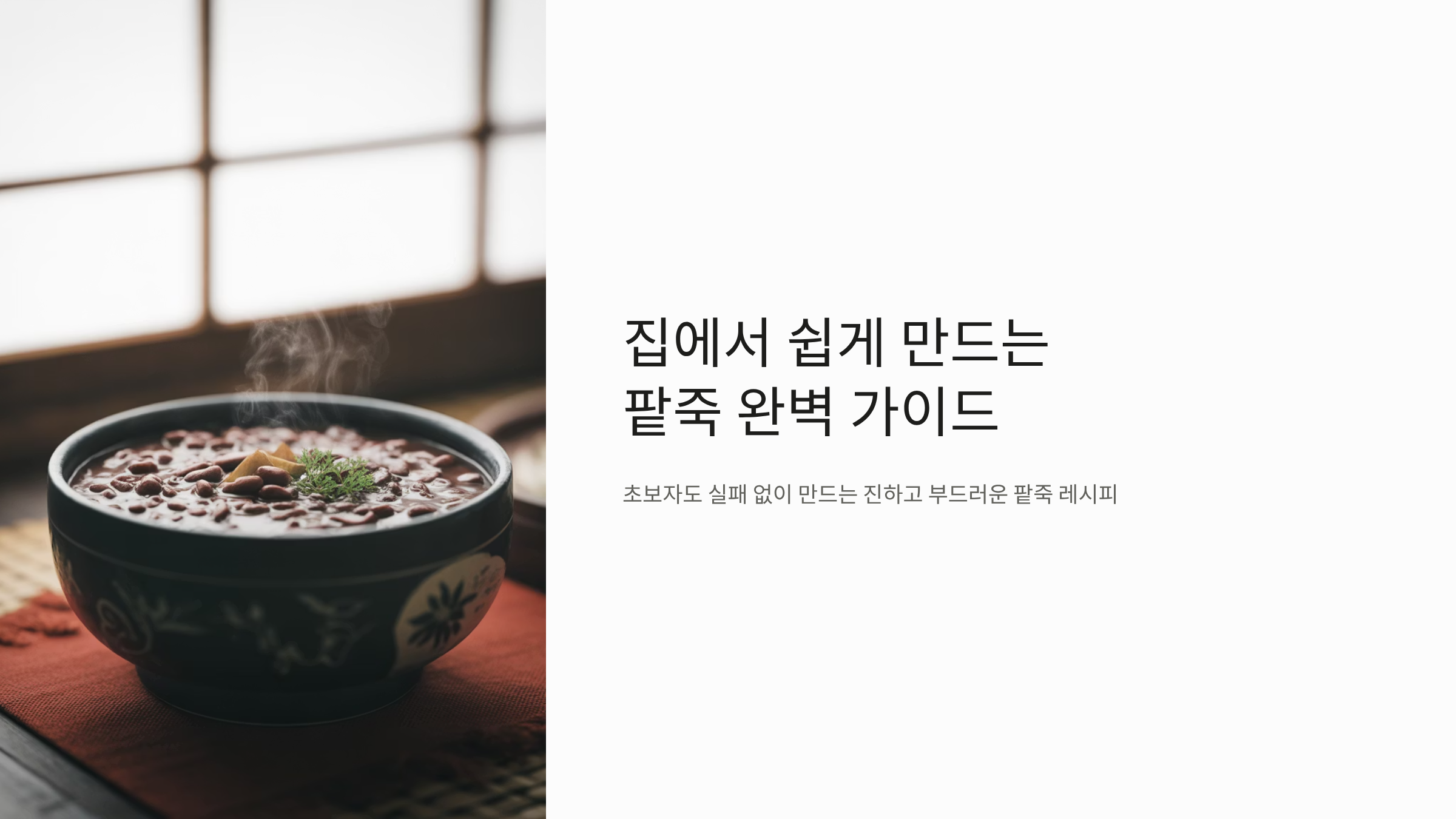 이 포스팅은 '누구나 쉽게 성공하는 팥죽 만드는 법'을 목표로 합니다. 복잡한 전통 방식의 핵심은 지키되, 현대적인 도구를 활용해 과정을 단순화한 스마트한 레시피를 통해 올겨울, 가족들에게 따뜻한 팥죽을 직접 대접하는 기쁨을 누리시길 바랍니다.