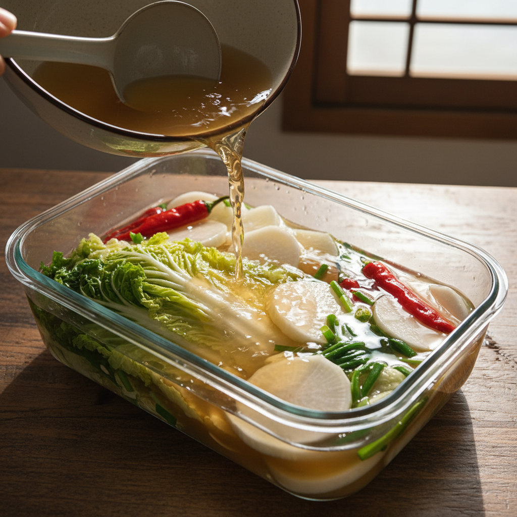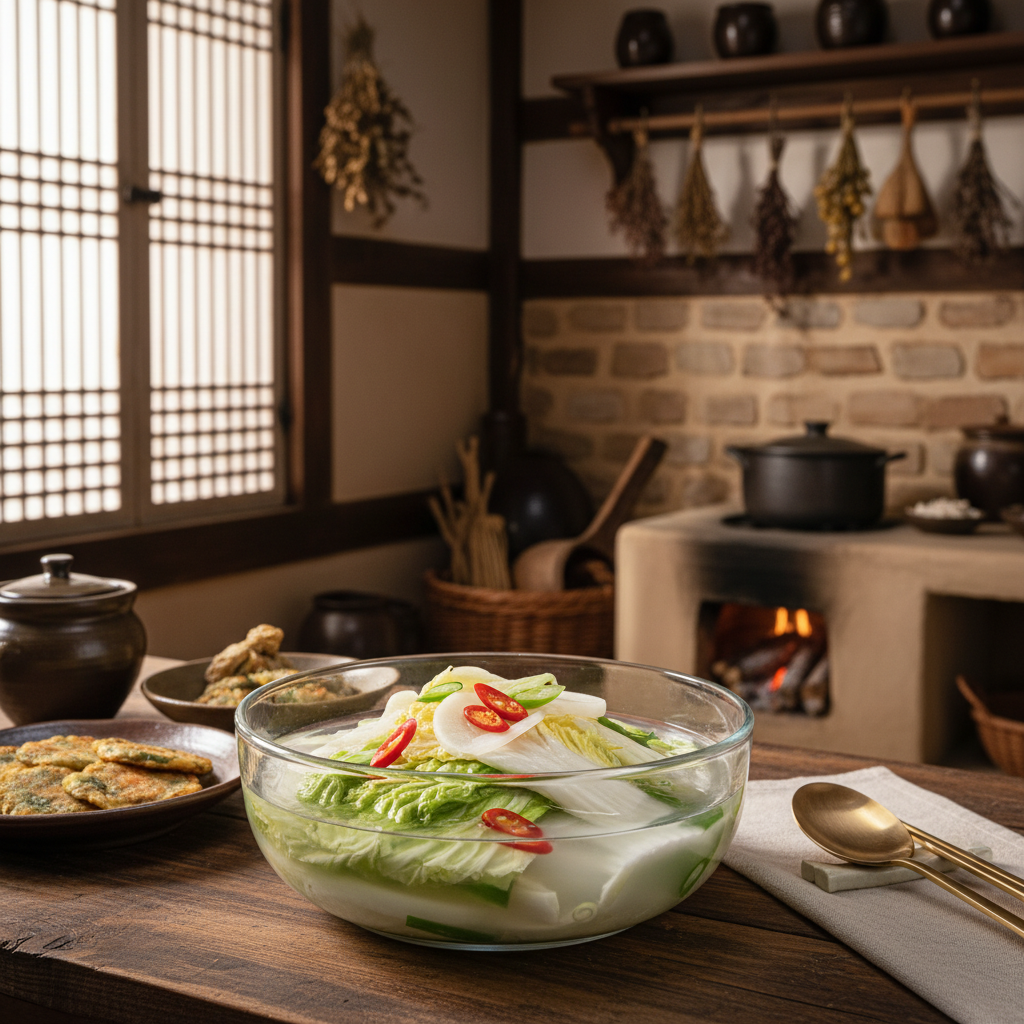 물김치는 단순하지만 정확한 재료 비율이 핵심이에요.